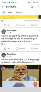 कटनी शहर के युवा पार्षद सोनू बहरे ने सोशल मीडिया पर पोस्ट कर भाजपा में बगावत की सुरसुरी पैदा कर दी है। उन्होंने कहा है कि उन्हें योगी जी का हिंदुत्व पसंद है, लेकिन मोदी जी का नहीं। साथ ही उन्होंने सवर्णों से UGC ACT 2026 का विरोध करने की अपील की है।